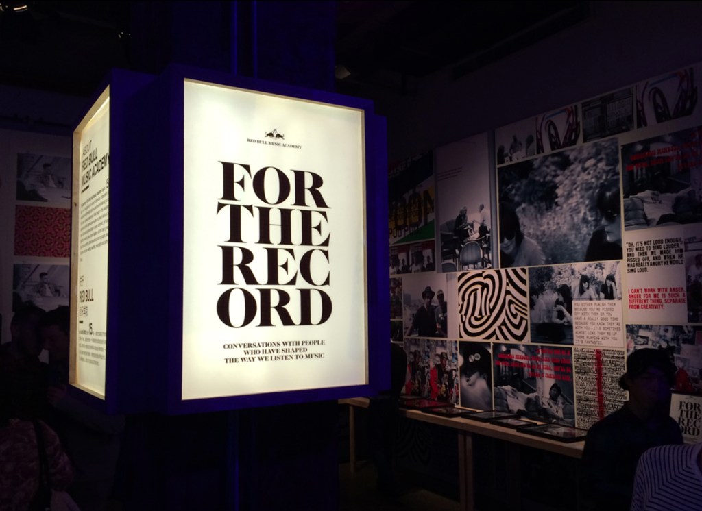 Additionally, for the exhibition event, we curated an invitee list of local creative culture influencers and designed a presentation of Red Bull Music Academy’s (RBMA) “For The Record” book. For The Record is a celebration of RBMA’s 15th anniversary, in which it links up with a compelling selection of top artists and industry insiders to share conversations and essays on some of the most relevant topics in music today.