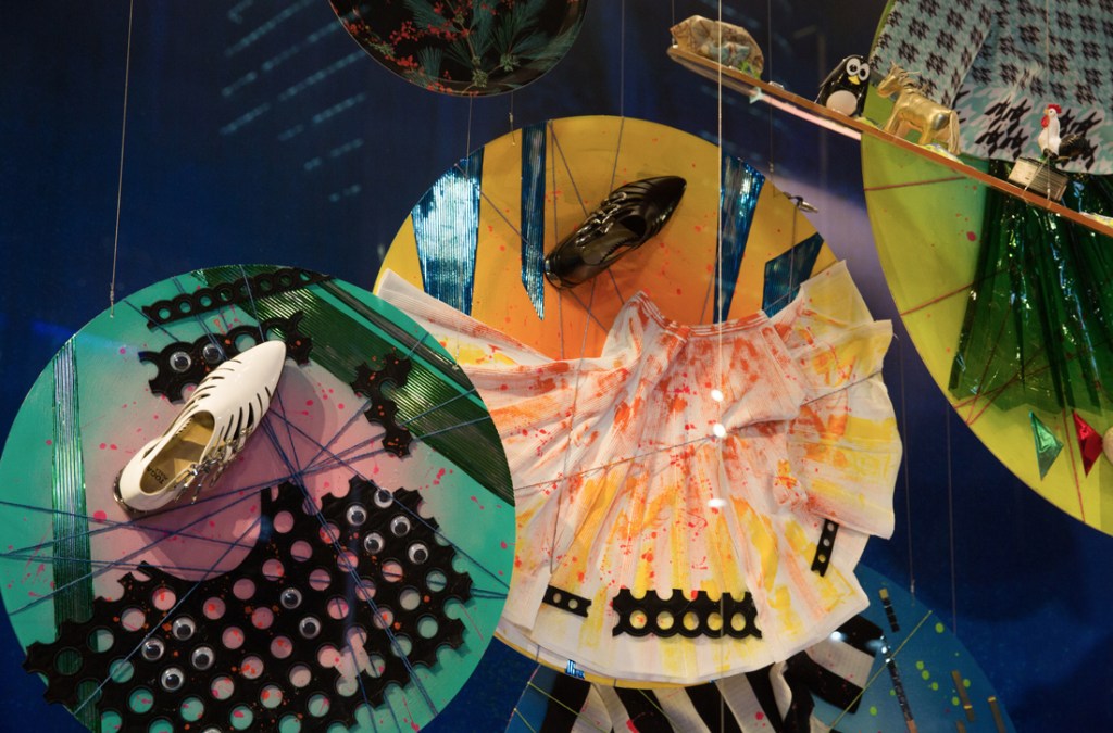 Geometric shapes are the inspiration behind this series of window installations and sculptures, titled Geometric Fusion / Fashion Evolution. Within the forms of rectangle, circle, triangle, and diamond, we remix and fuse four artists’ styles with Lane Crawford’s iconic products.
